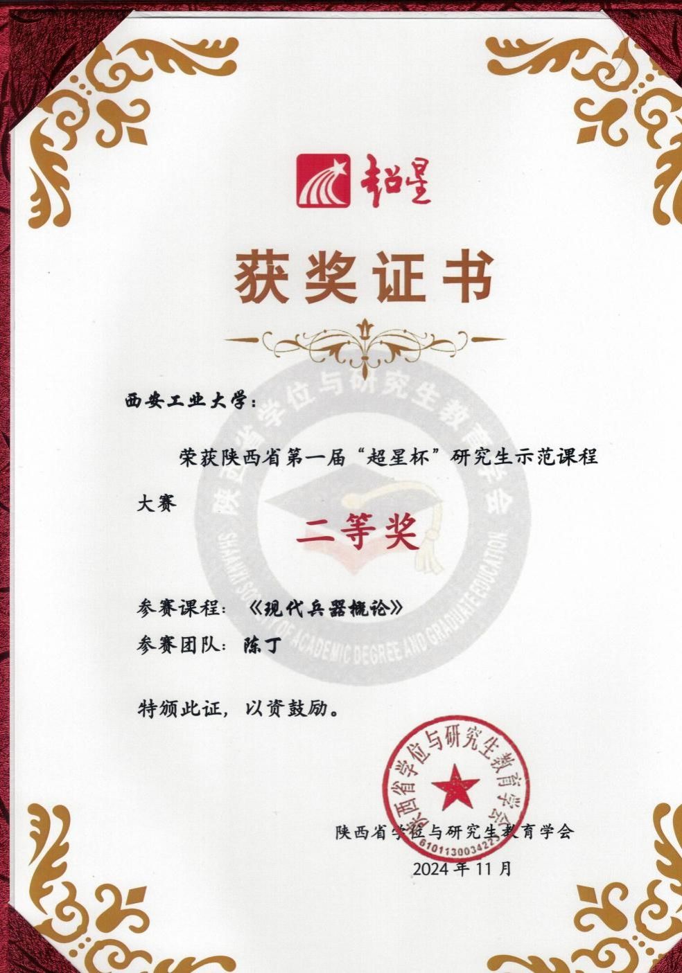 11月1日下午,陕西省第一届研究生示范课程大赛颁奖仪式暨2024年陕西省研究生示范课程建设会议在西安万丽酒店举行。本次大赛由陕西省学位与研究生教育学会主办,超星泛雅集团协办并提供赞助。本次大赛旨在进一步提升陕西省研究生教育质量,推动研究生课程教学的创新与发展。澳门电子pg游戏官网高度重视此次大赛,积极组织院内教师参与,经过严格筛选和精心准备。最终,陈丁副教授负责的研究生课程《现代兵器概论》通过研究生院选拔代表学校参加本次赛事。