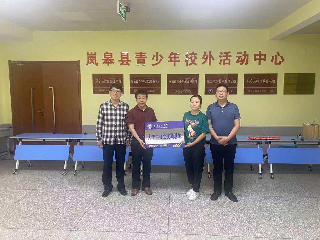 2023年9月10日,兵器学院党委书记马保吉与辅导员王国栋赴安康市岚皋县挂牌大学生社会实践基地。岚皋县县团委书记曹勇贤、岚皋县青少年校外活动中心主任段武燕出席了挂牌仪式。