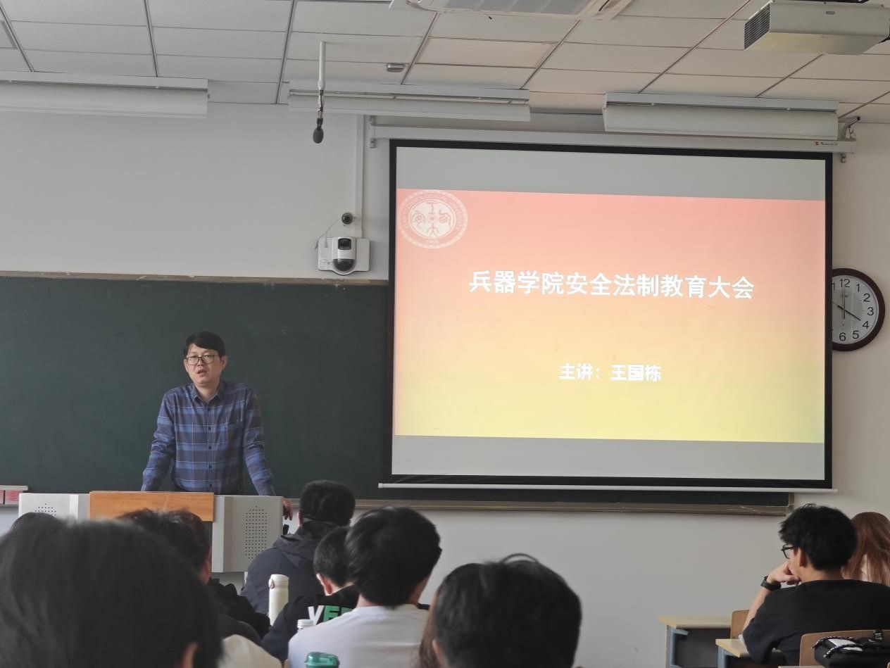 2024年4月2日星期二下午四点,为迎接即将到来的清明节假期、加强学生的安全法制意识,澳门电子pg游戏官网辅导员王国栋老师在教三212教室开展了“兵器学院安全法制教育大会”主题安全教育。