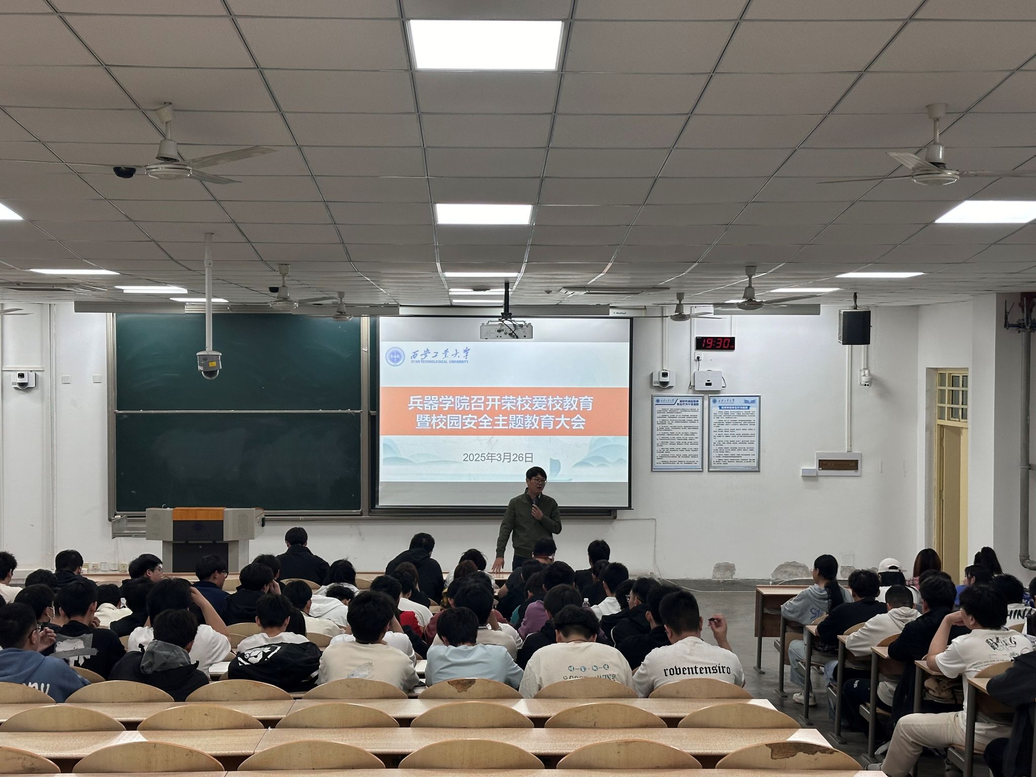此次会议23级全体同学参会,通过此次会议,兵器学院的同学们不仅深化了爱校荣校的集体认同,更构筑起牢固的安全防范意识。更重要的是,这场思想盛宴为兵器学院学子指明了成长方向,激励大家以更加清晰的奋斗目标、更加坚定的前进步伐,在实现个人理想与服务国家需求的统一中书写精彩人生。