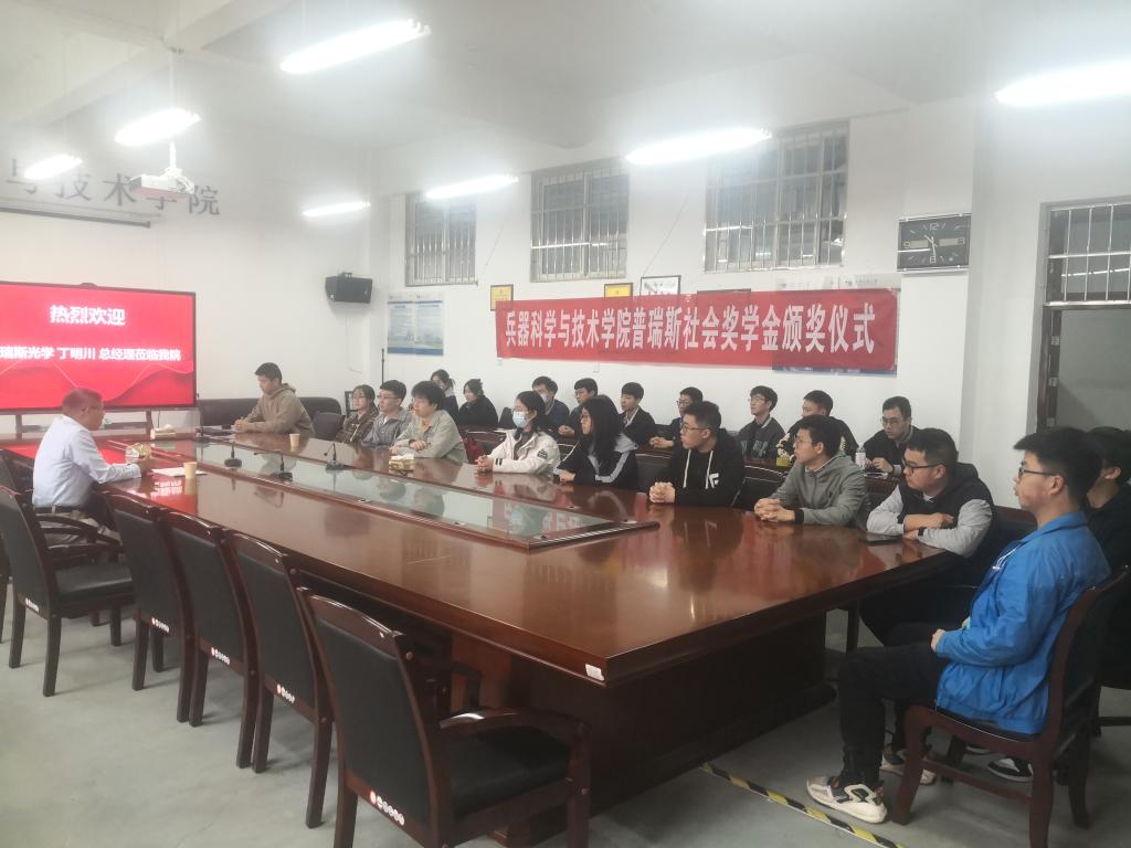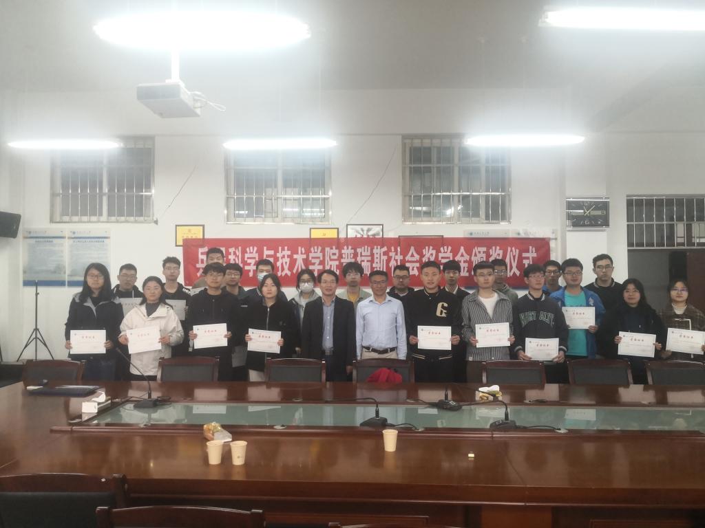 2023年4月24日早上10:30分,澳门电子pg游戏官网在工6-507召开普瑞斯奖学金颁发大会,会议由辅导员王国栋老师主持,普瑞斯光学技术有限公司丁明川总经理、澳门电子pg游戏官网蔡长龙副院长、2021-2022年度本科生、研究生普瑞斯奖学金获得者二十余人参加了会议。