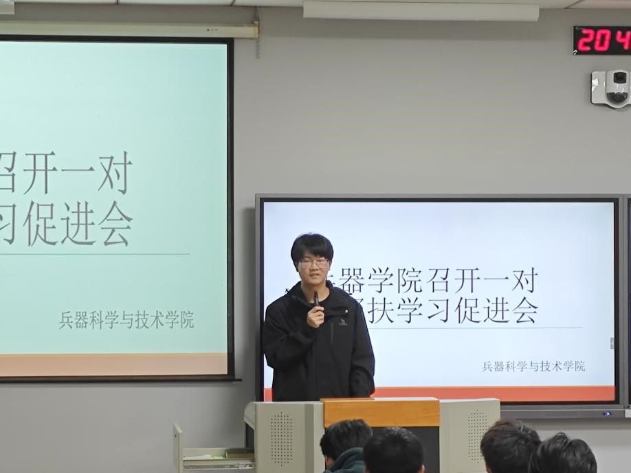 10月23日晚上20:30,澳门电子pg游戏官网在教2-202教室召开一对一帮扶学习促进会,促进会由兵器学院团委学习部部长段静萱同学主持,李雨龙同学、臧日平同学作为学生代表发言,22、23级所有帮扶成员参与会议。