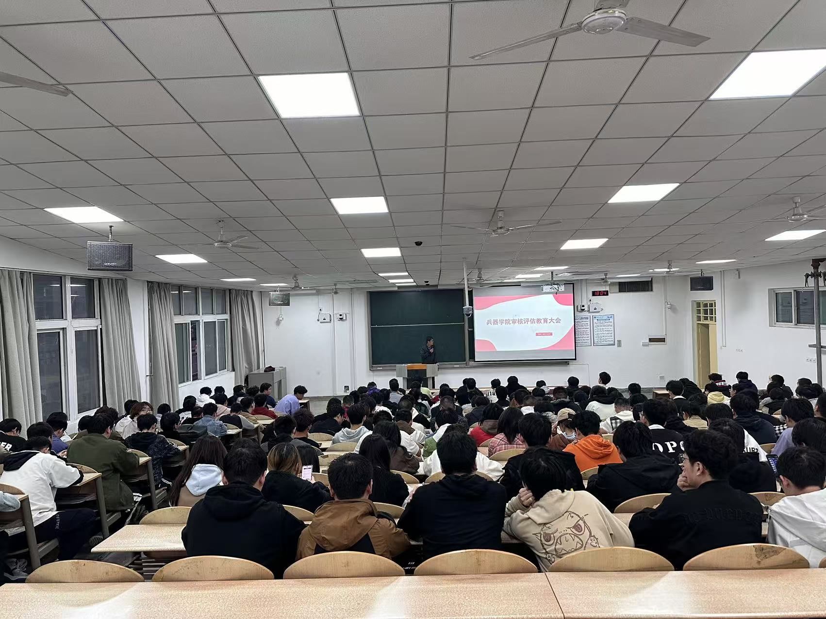 2024年10月25日澳门电子pg游戏官网于教1-102召开了审核评估教育大会。大会由兵器学院辅导员王国栋老师主持,2022、2023级全体学生参加会议。