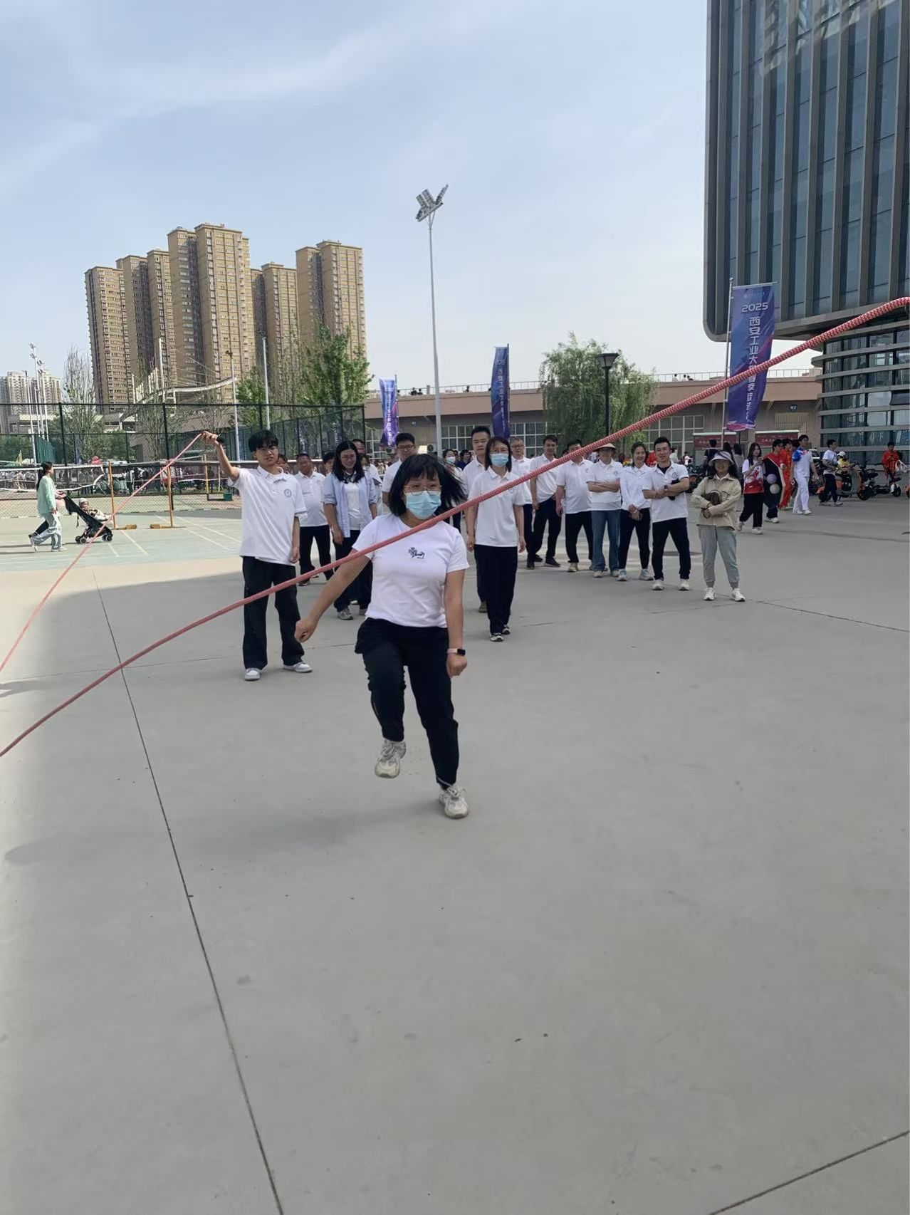 为进一步丰富校园文化生活,增强师生凝聚力,营造团结和谐的学院文化氛围,2025年4月24日下午,兵器学院在未央校区大学生活动中心广场,举行由各系组队参加的跳绳比赛。