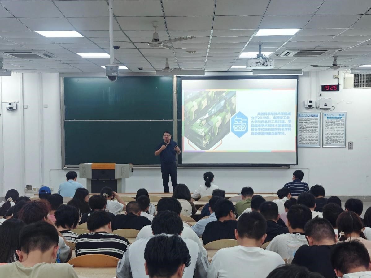 随后,吴杰就考研相关内容进行分享。他详细介绍了澳门电子pg游戏官网硕士点的情况,以及讲述了本学院整合了学校现有资源,以国防特色为课题,不断发展壮大。学院硕士研究生招生专业为兵器科学与技术(学硕)和机械(专硕)。吴杰从培养核心、研究方向及导师团队等方面进行了全面阐述,并举例介绍了信息感知与智能控制团队、光电工程技术研究团队、网电对抗与智能探测团队等学院的优秀师资团队和科研团队,让同学们对学院的研究实力有了更深入的了解。
